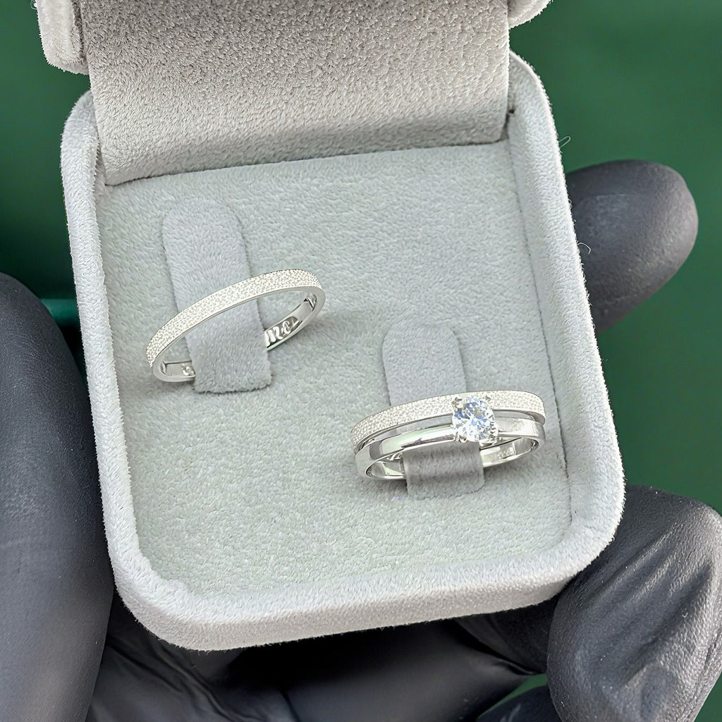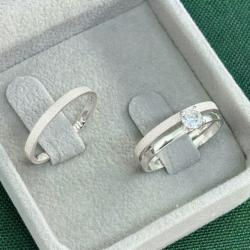 As Alianças Caprice 2mm apresentam um design reto com acabamento diamantado completo, oferecendo um brilho sofisticado em uma espessura delicada. O conjunto perfeito para quem busca alianças que combinam discrição e elegância com o anel solitário.