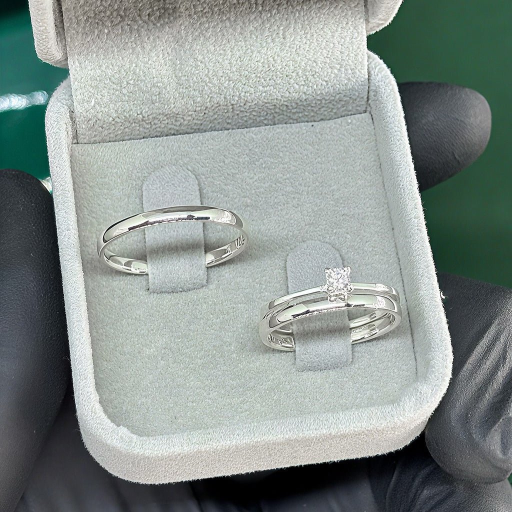 As Alianças Classic 2mm são a escolha perfeita para casais que apreciam um design clássico e discreto. Seu acabamento liso e abaulado garante conforto e um visual sofisticado, ideal para quem busca uma joia elegante e atemporal. O conjunto é complementado pelo anel solitário, trazendo um toque especial de brilho.