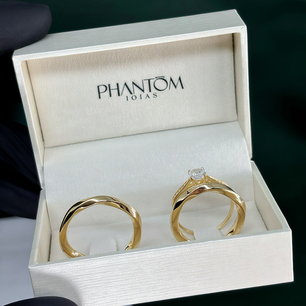 ALIANÇAS TANSY 2,5MM COM ANEL SOLITÁRIO CRAVEJADO – DELICADEZA E ORIGINALIDADE COM UM TOQUE DOURADO