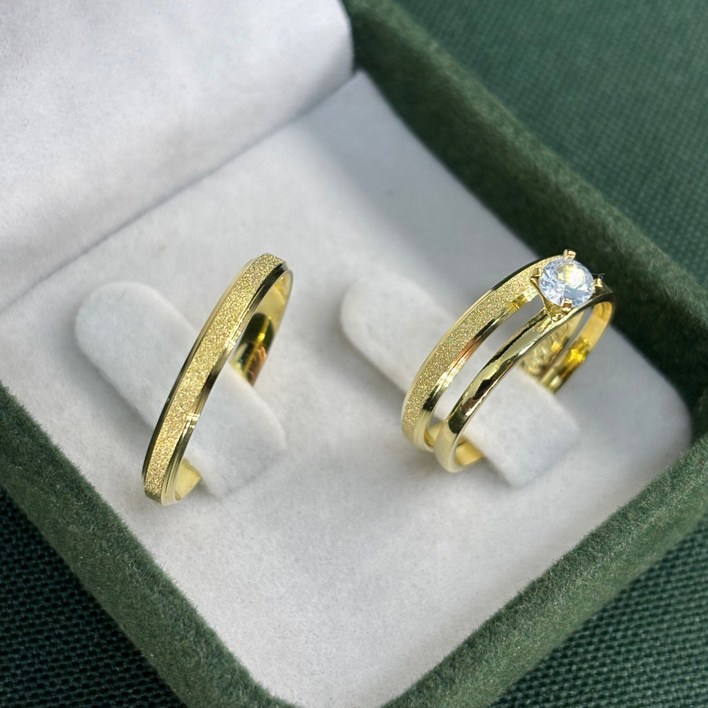 ALIANÇAS LARYS 2,5MM COM ANEL SOLITÁRIO – DELICADEZA E BRILHO EM HARMONIA