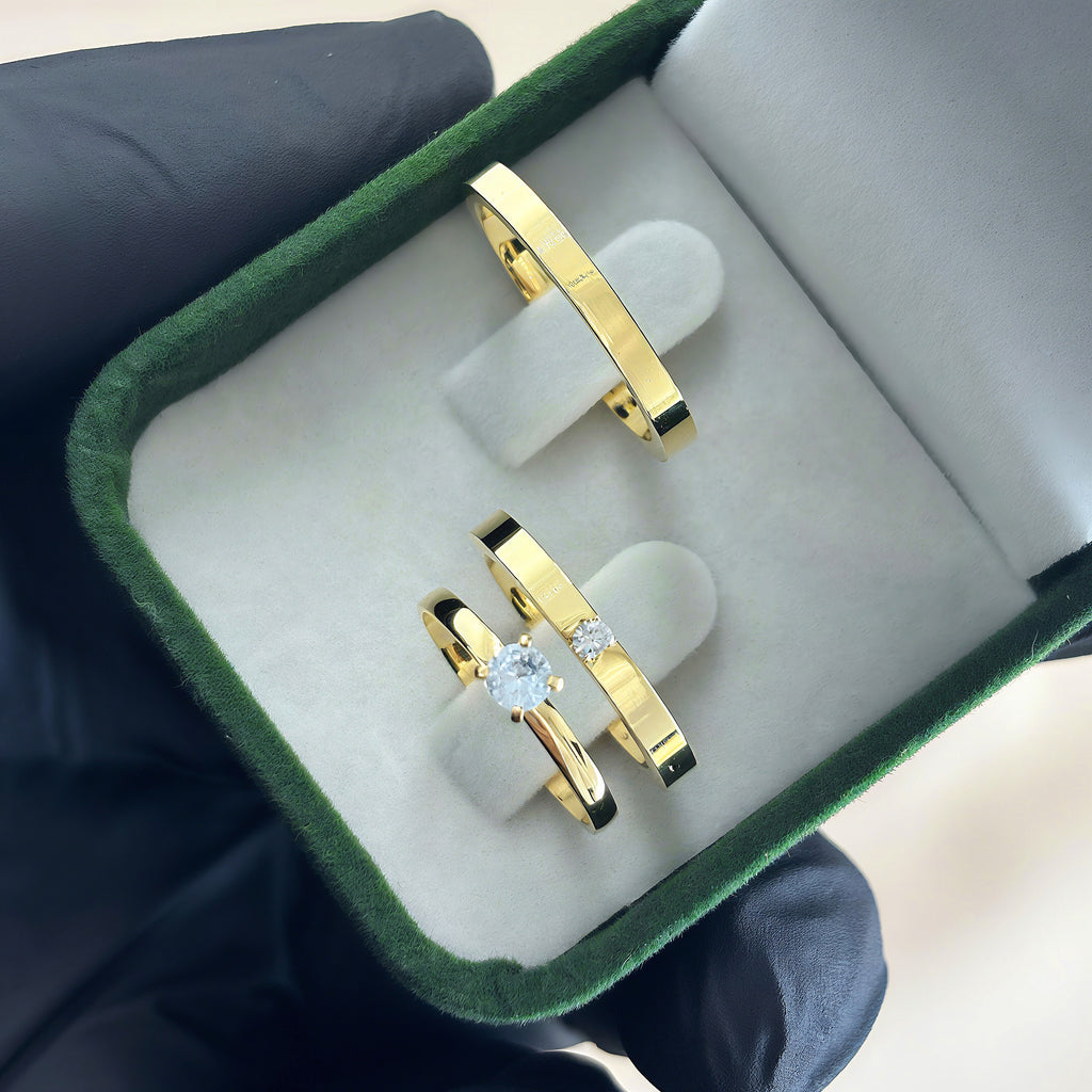 ALIANÇAS LYRIC 2,5MM COM ANEL SOLITÁRIO – MINIMALISMO, DELICADEZA E ELEGÂNCIA