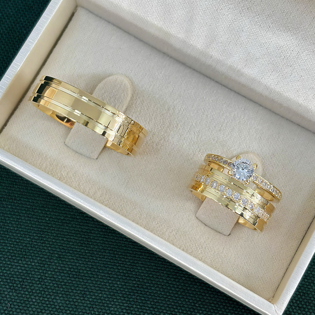 ALIANÇAS ARKAN 6MM COM ANEL SOLITÁRIO – CLÁSSICO COM UM TOQUE DE BRILHO