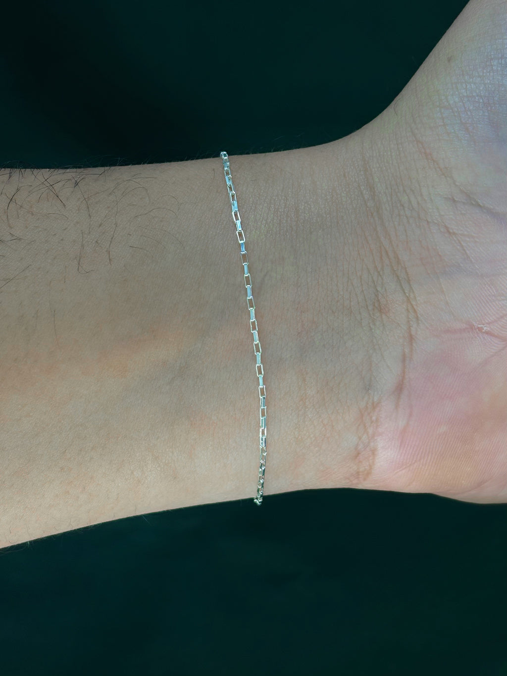 Pulseira Cadeado Palito em Prata Italiana 925, delicada, refinada e com elos alongados que criam um visual elegante e moderno. Uma peça leve, minimalista e versátil, ideal para uso diário ou composição com outras pulseiras.